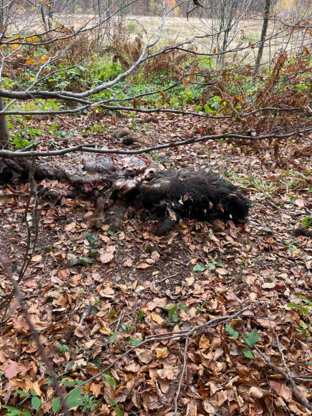 На місці незаконного полювання виявили залишки туш двох нещодавно вбитих дорослих особин зубра.
