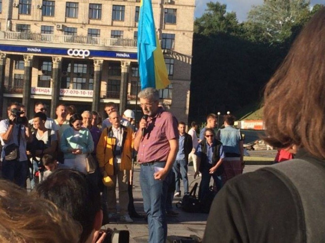 На центральній площі Києва пройшла акція пам'яті загиблого сьогодні вранці журналіста Павла Шеремета. Акція почалася з хвилини мовчання.