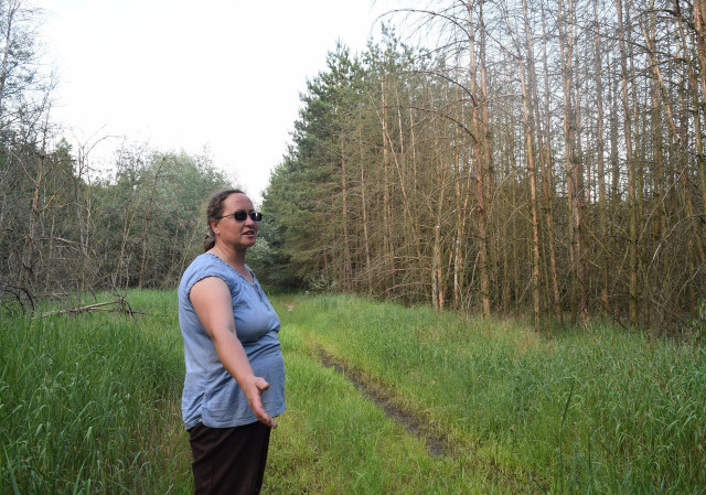 Через кількасот метрів від вигрібної ями видніється смердюче «озерце». Поряд із ним – сухі від випарів аміаку дерева. Спочатку здається, що це лише кілька маленьких сосен, але, коли зайти глибше в ліс, відкривається страшна картина із численних мертвих дерев. Відразу стає зрозуміло, що гноївку тут не вперше вилили.
