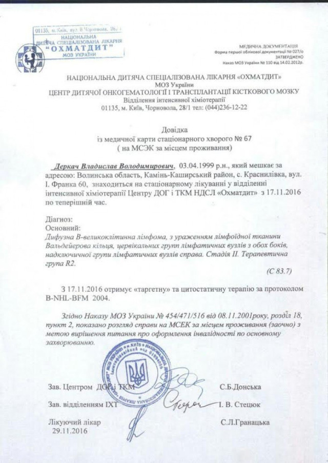 Нагадаємо, 17-річному Владиславу Деркачу з Краснилівки поставили діагноз дифузна лімфома 2 стадії (рак лімфовузлів).