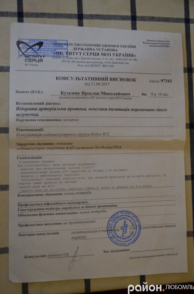 У хлопчика відкрита артеріальна протока і збільшений лівий шлуночок. Ця вада заважає дитині розвиватися, а у спекотну погоду малюк починає задихатися, інформує Район.Любомль.