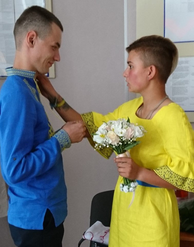 5 місяців тому починалася історія їхнього кохання, а сьогодні в Івана та Надії – вихідний. Сьогодні, змінивши військову форму на синю й жовту вишиванки, вони побралися неподалік передових позицій.