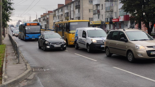 Через заміну огородження на шляхопроводі від проспекту Соборності утворився затор. Це створило незручності для водіїв та пасажирів, каже водій маршрутки Роман.