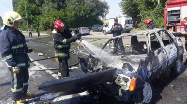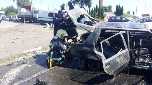 Автомобіль Славута був охоплений вогнем. Існувала загроза вибуху газового балону, що був в автівці. Рятувальники подали на гасіння вогнегасячі речовини. Вогонь погасили. Вибуху вдалося уникнути.