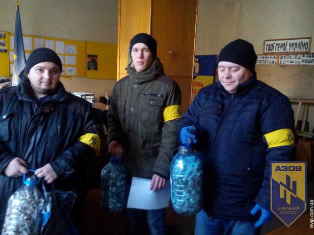 До сесійної зали членів ЦК «Азов» не пропустили, але в коридор до активістів вийшов перший заступник міського голови Нововолинська Андрій Сторонський. У присутності місцевих депутатів та представників ЗМІ члени Цивільного Корпусу «Азов» Нововолинська вручили зібрані шприци.
