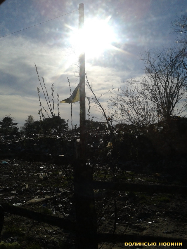 На місцевому сміттєзвалищі біля Ківерець у селі Заброди вивісили синьо-блакитний стяг, за який ще нещодавно гинули люди.