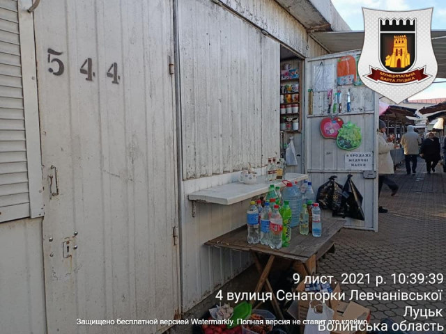 Під час чергування на прилеглій території до ринку «Центральний», що на вул. Глушець у м. Луцьку, інспекторами відділу протидії стихійній торгівлі департаменту муніципальної варти було виявлено факт продажу алкоголю з рук із контейнерів №543 та №531 на території ринку.