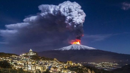 Розташований між Африканською та Євразійською тектонічними плитами та розломом між Африканською та Іонічною плитами вулкан Етна часто вивергається. Одне з найсерйозніших вивержень відбулося в березні 2017 року, коли було поранено 10 людей, у тому числі команда репортерів BBC.За даними агентства ANSA, вулканічний попіл вкрив автомобілі, балкони, вулиці і тротуари в Катанії. Однак вранці активність вулкана зменшилась. Робота аеропорту Катанії внаслідок виверження порушена не була.