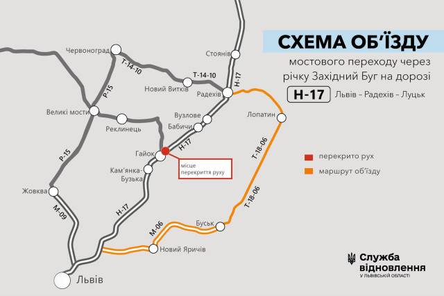 15 грудня перекриють рух автомобільного транспорту через мостовий перехід через річку Західний Буг поблизу с. Гайок на дорозі Н-17 Львів – Радехів – Луцьк.