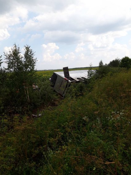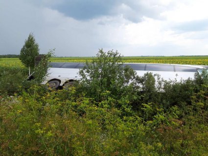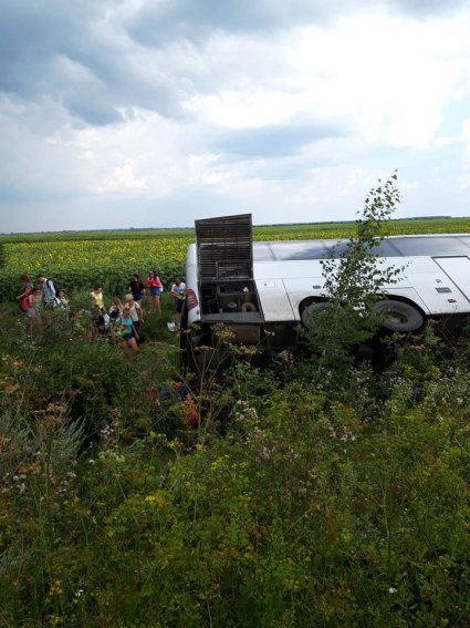 Зі слів супроводжуючої, ніхто серйозно не постраждав. За попередніми даними у автобуса вистрелило переднє ліве колесо, що і спричинило ДТП.