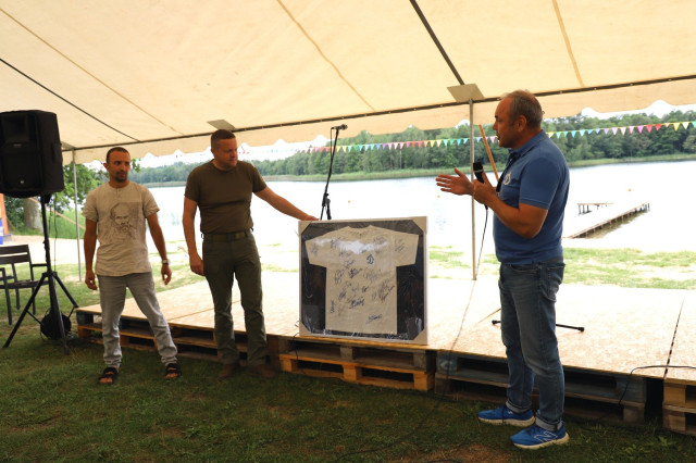 Попереду в спортсменів 10 днів оздоровлення, активних занять на природі, спортивних ігор, плавання на човнах і сап-дошках. Сподіваємось, цей час стане для них джерелом нових сил та просто радістю від відпочинку.На згадку про перебування на Волині очільник області вручив дітям пам’ятні подарунки. Натомість отримав від керівника фізкультурно-спортивного товариства «Динамо» України Миколи Даневича футболку з підписами всіх зірок футбольного клубу.