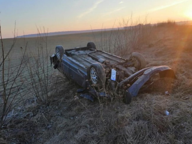 На Волині автівка злетіла в кювет і перекинулась. Фото