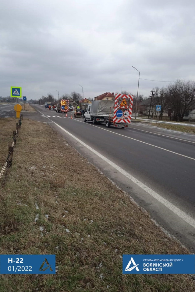 Такі роботи підрядник розпочав на ділянці, що межує з Рівненською областю, і рухається в напрямку м. Луцька. Використовується холодна асфальтобетонна суміш.
