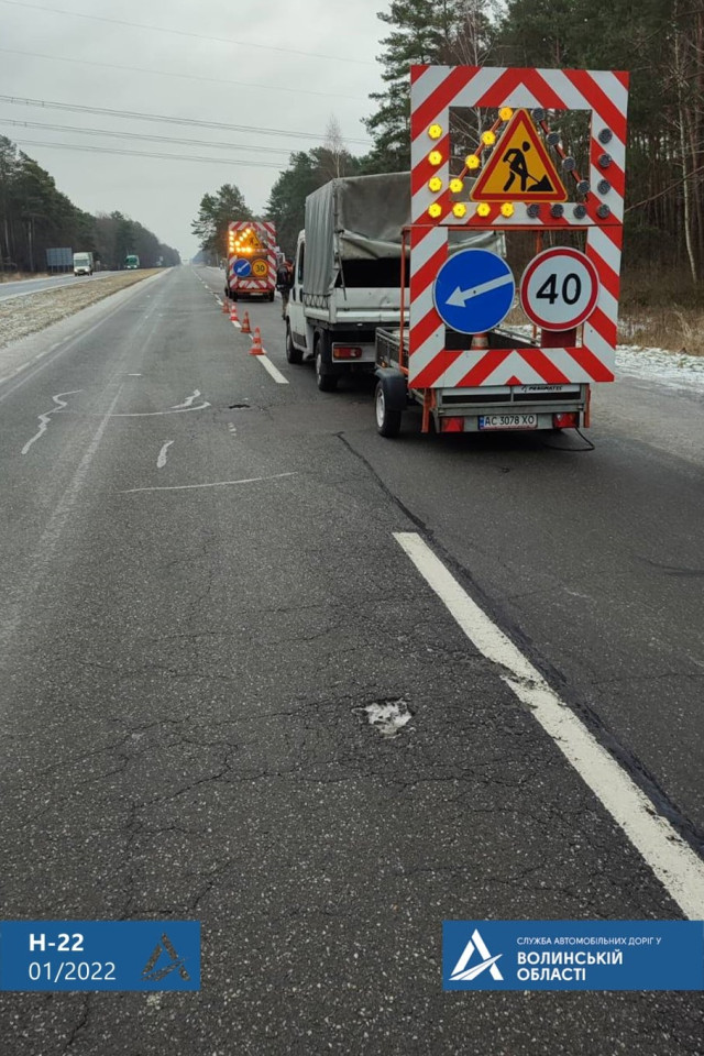 Контроль якості вказаних аварійних дорожніх робіт, у т.ч. матеріалів, що застосовуються, здійснюється лабораторією та інженерами з технічного нагляду Служби автомобільних доріг у Волинській області.