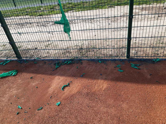Ще 23 серпня ось на цьому місці висів зелений тент. А вже вдосвіта 26 серпня невідомий чоловік підійшов до поля для гри в теніс і намагався підпалити тканинний навіс.