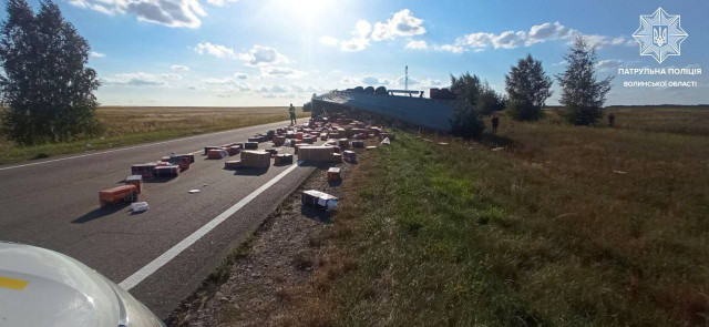 На Волині перекинулась вантажівка, наїхавши на камінь. Фото