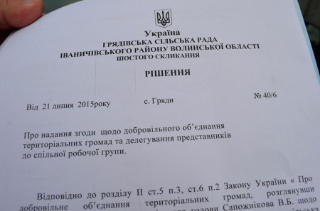 На Волині вже є перша сільська громада, котра дала «добро» на пропозицію про об’єднання з центром у місті обласного значення. Грядівська сільська рада Іваничівського р-ну під час сесії вирішила відповісти згодою на ініціативу Нововолинська.