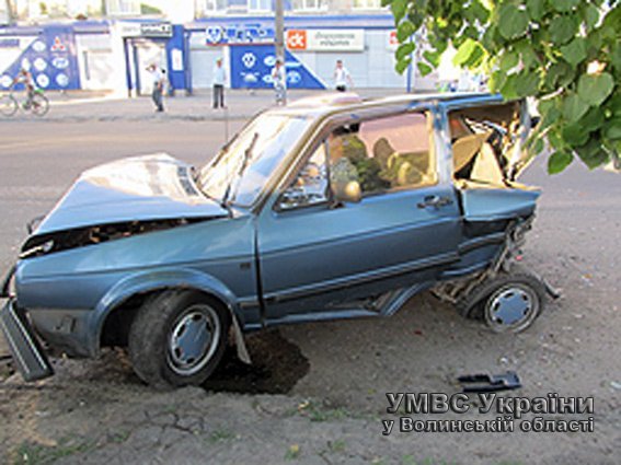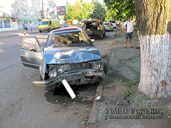 Нагадаємо, того ж дня трапилася ДТП у Луцьку: «Гольф» від удару кинуло в дерево.