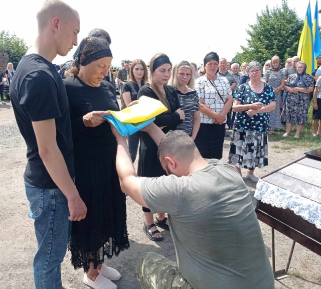 Рідним Героя вручили Державний Прапор України, який почесна варта зняла з домовини. На честь солдата пролунав трикратний стрілецький салют.