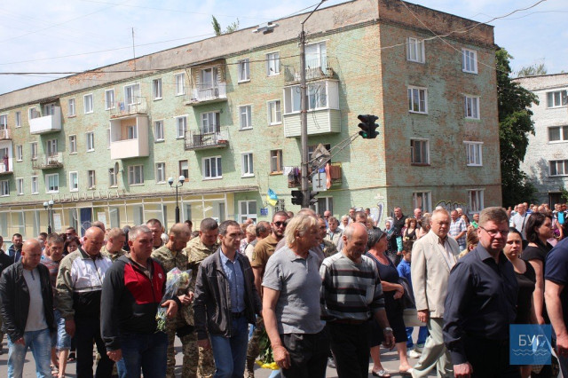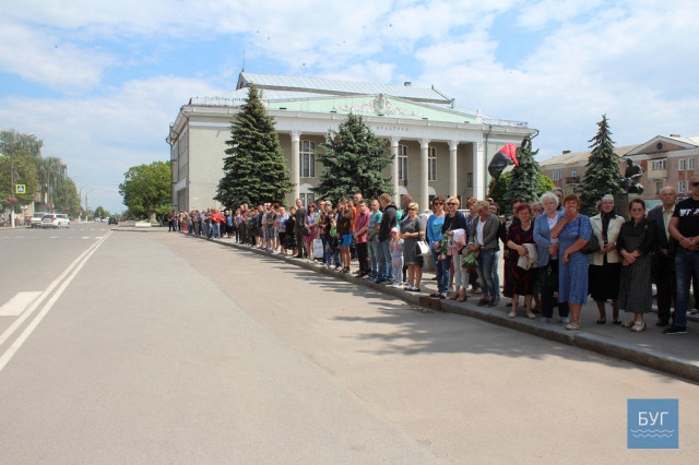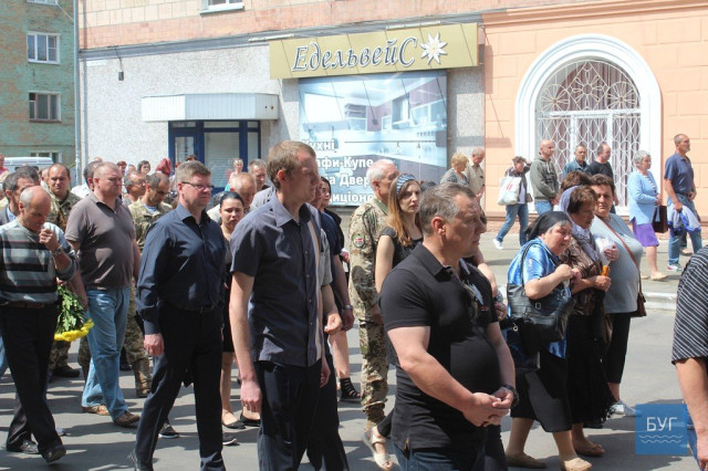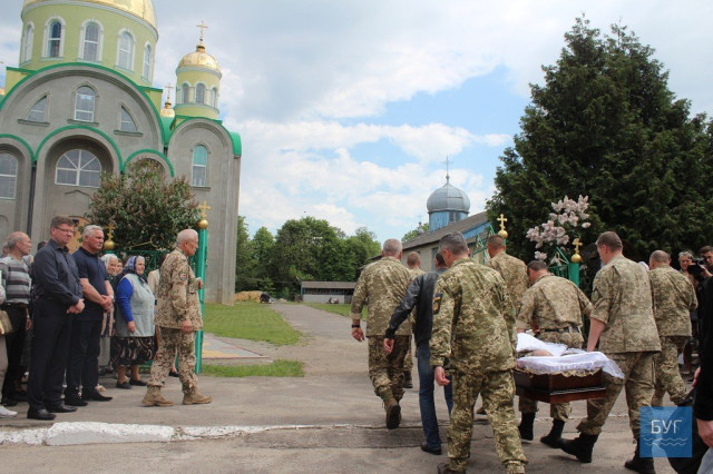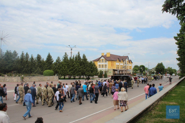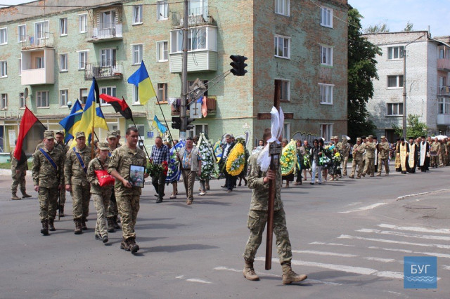 Прощання із загиблим бійцем розпочалося біля будинку, куди прийшли родичі, близькі, друзі, бойові побратими, представники військкомату та міської влади, інші небайдужі мешканці, передає БУГ.