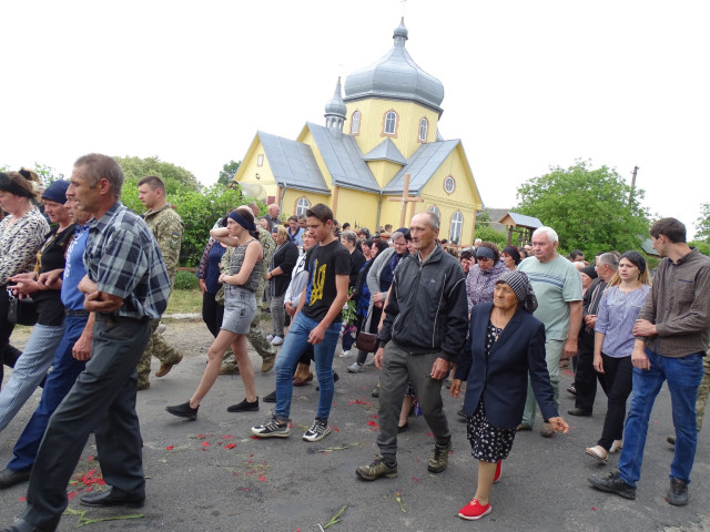 Віддати данину шани захиснику і провести його в останню земну дорогу зійшлася родина, знайомі, односельчани, мешканці громади. По встеленій маками та півоніями дорозі військовослужбовці на плечах пронесли воїна вулицями рідного села до місця земного спочинку.