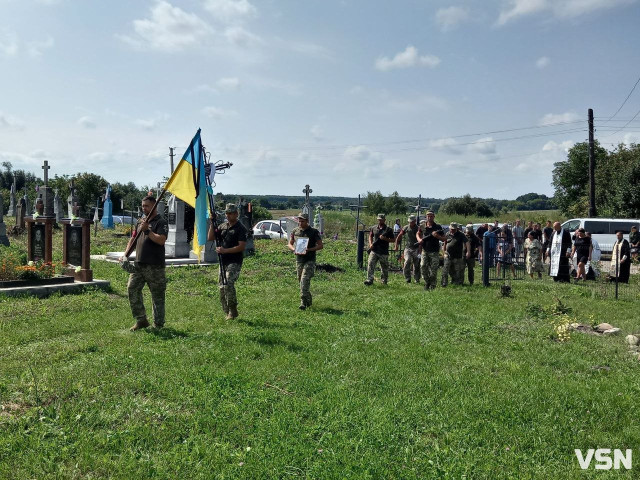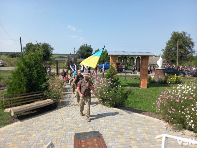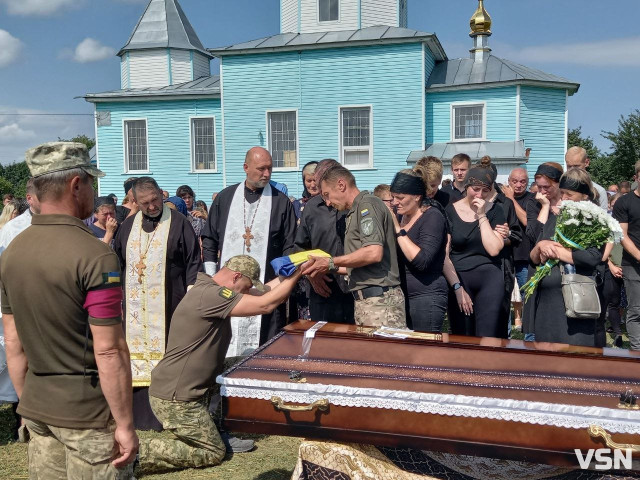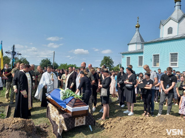 Люди не тамують сліз. Ридає згорьована мама. Тато намагається триматися. Він теж військовослужбовець. Приїхав востаннє побачитися зі сином, який для нього завжди був героєм. Тепер його кровинка – Герой України. Поряд з домовиною воїна – ще зовсім маленькі донечки. Вони не розуміють чому всі довкола сумні. Дивляться на заплакану маму і собі починають плакати.