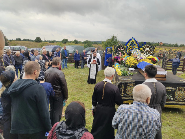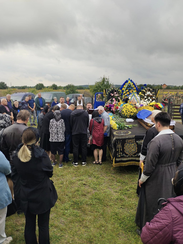 Поховали Героя на кладовищі в селі Башова. Три постріли почесної варти сповістили всім, що тут навіки спочив 45-річний Герой, який загинув за Україну.