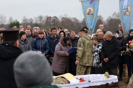 Вишнівська громада попрощалася із загиблим військовослужбовцем, жителем села Римачі Андрієм Попком.