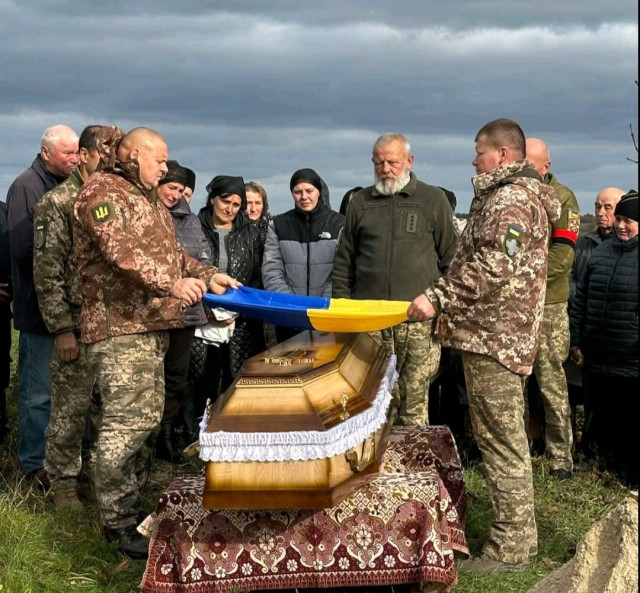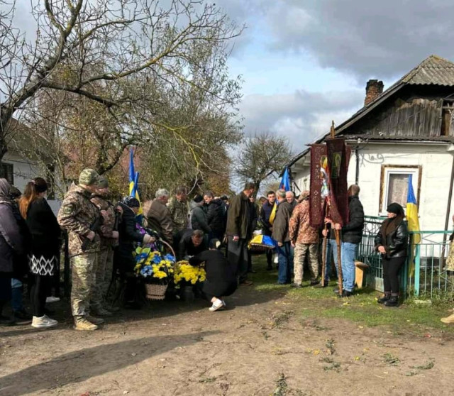 З усіма військовими почестями поховали Героя Олега Тананайка на сільському кладовищі.