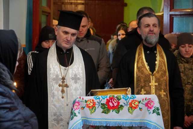 Потому траурний кортеж у супроводі військового оркестру вирушив до Петропавлівської церкви, де відслужили панахиду. Співчуття від імені громади висловив секретар Володимирської міської ради Іван Юхимюк.