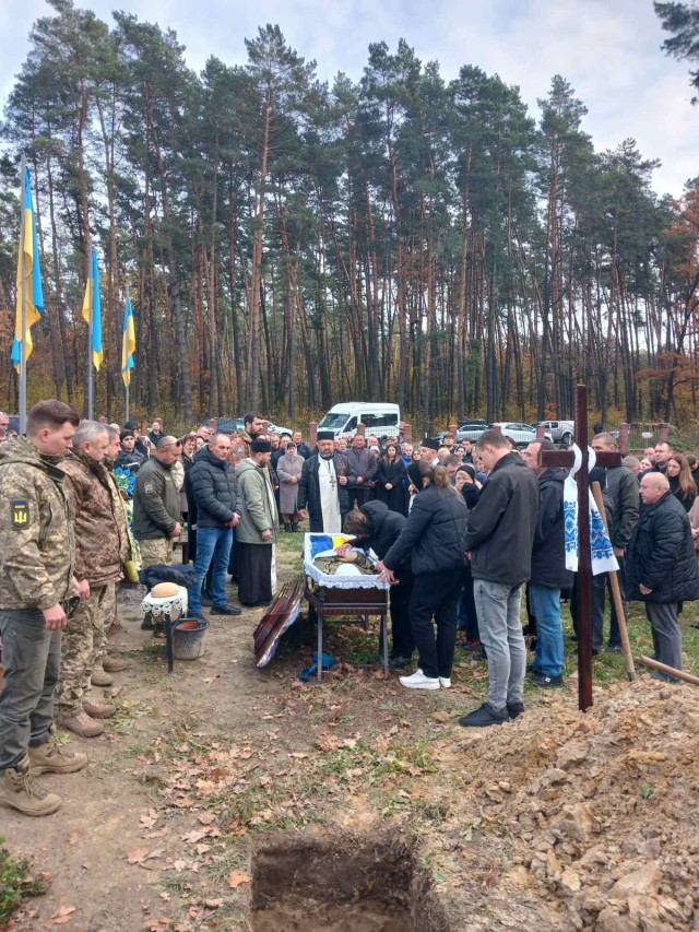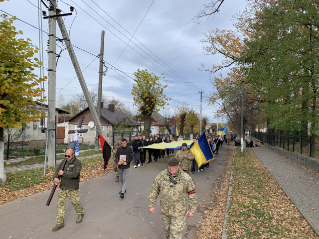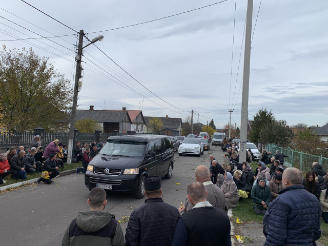 Далі траурна процесія проїхала містом до рідної домівки, де зібралися рідні, друзі, сусіди й побратими.