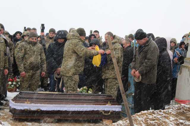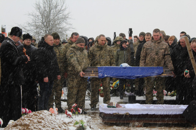 Поховали Миколу Войтовича з військовими почестями на місцевому кладовищі.