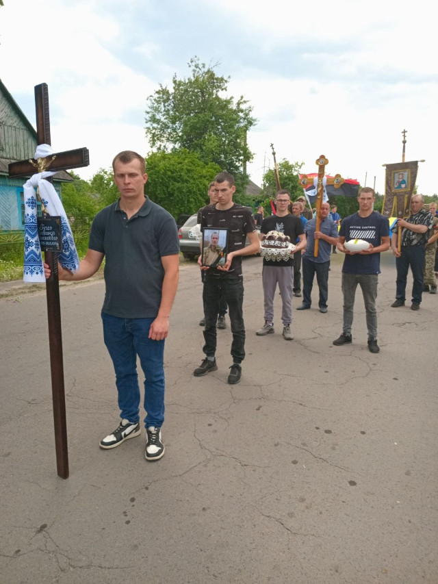 Траурний кортеж з тілом Героя прослідував вулицями навколишніх сіл, де прощалися з воїном, схиливши голови та ставши навколішки.
