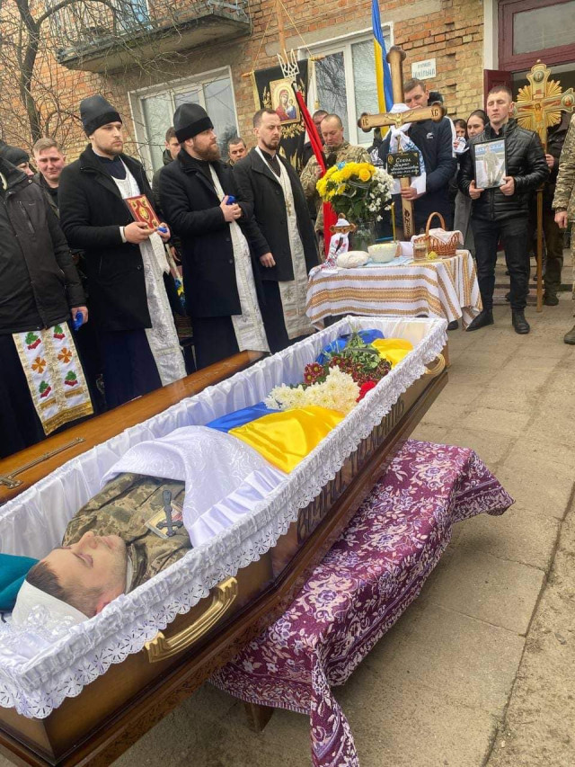 Чин похорону відбувся у храмі Архістратига Михаїла. Відспівали військовослужбовця 10 священників Православної Церкви України на чолі з протоієреєм Андрієм Закидальським.