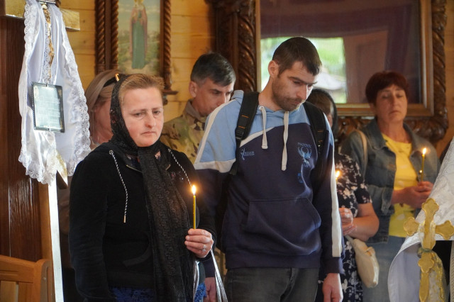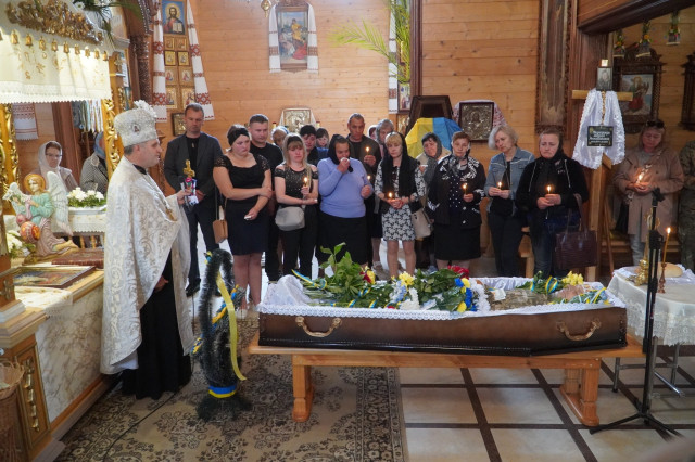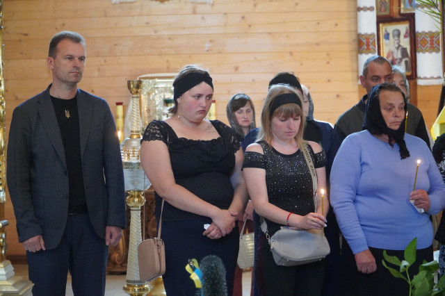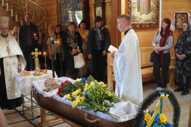 Траурний кортеж, який проїжджав вулицями міста, мешканці громади зустріли стоячи навколішки із синьо-жовтими стягами у руках. Чин похорону відбувся у храмі Віри, Надії, Любові та матері їх Софії, куди прийшли рідні, друзі покійного, представники міської та районної влади, а також небайдужі мешканці громади.