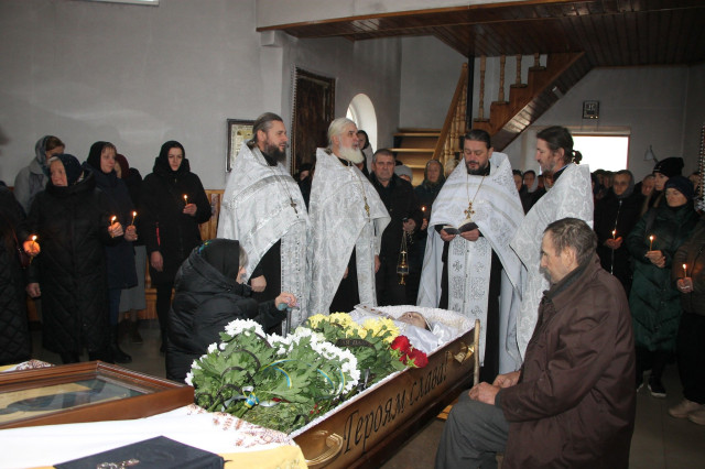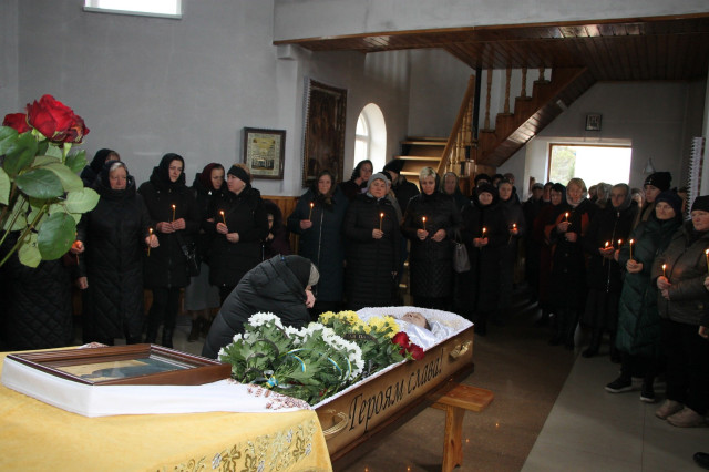 Після прощання біля будинку батьків захисника траурна хода вирушила до Храму на честь ікони Божої Матері «Живоносне Джерело», де відбулося відспівування Героя.