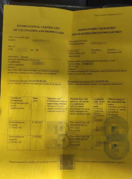 Слідство встановило, що чоловік налагодив схему виготовлення і збуту громадянам підроблених міжнародних сертифікатів про вакцинацію проти COVID-19 без її проходження.