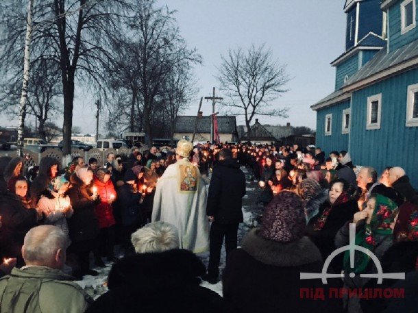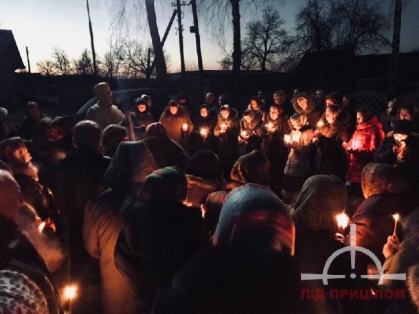 Незважаючи на мороз, сотні жителів села о сьомій годині ранку зібрались біля церкви. Та на перепоні став священик. Сергій Голодюк не впустив вірян до церкви. Стоячи на вході до храму та лукаво посміхаючись, він відмовився наводити будь-які аргументи щодо свого рішення. Навіть під тиском прихожан та криками «Ганьба!» та «Геть в Москву!» він залишився непохитним, хоча багато сімей приїхало з маленькими дітьми, які мерзли надворі та мусили відігріватися в автівках.