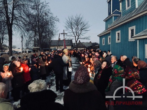 Як повідомляє Під прицілом, місцева більшість, яка перша в районі виспупила за перехід до ПЦУ після надання Томосу, прийшла до храму у світле свято Хрещення Господнього, щоб посвятити воду.