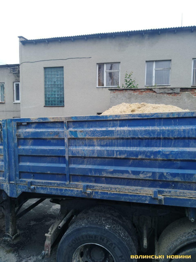 На місці події виявили трактор з ковшом та вантажний автомобіль з причепом, на які і завантажували пісок. Причіп автомобіля та трактора були заповнені до борту.