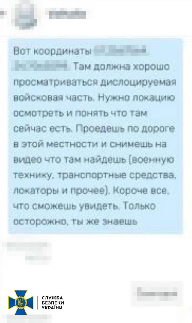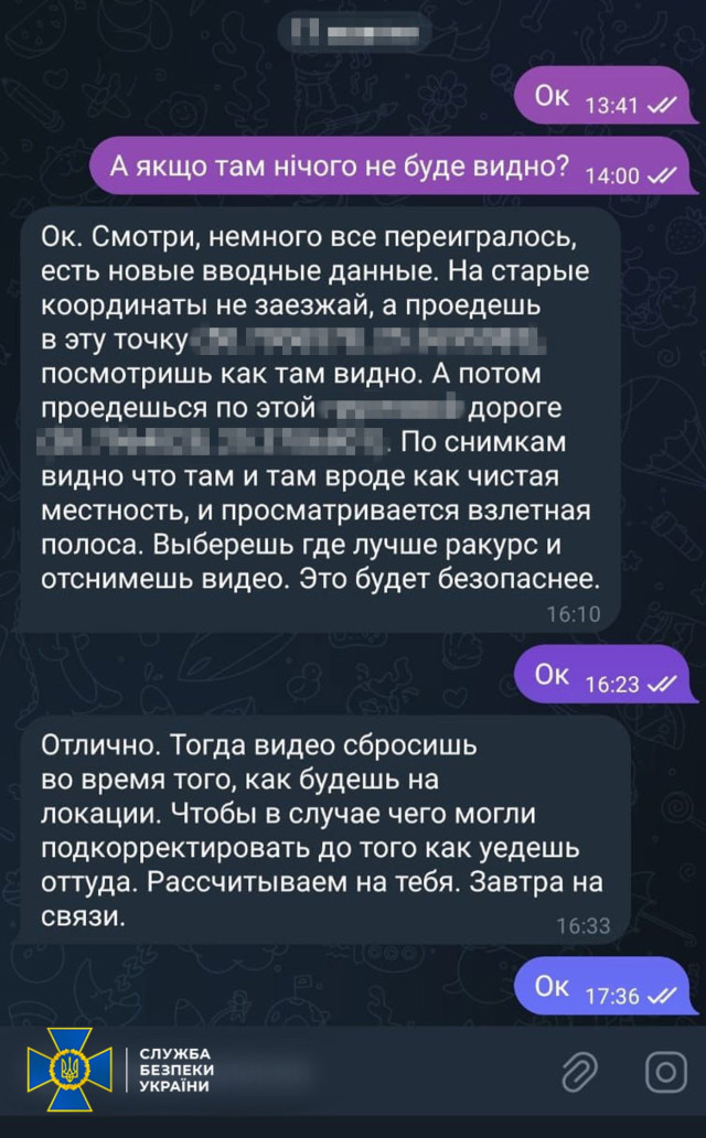 Щоб виконати це завдання, агент на службовому авто об’їжджав місцевість під виглядом робочих поїздок та фіксував розташування військових об’єктів.