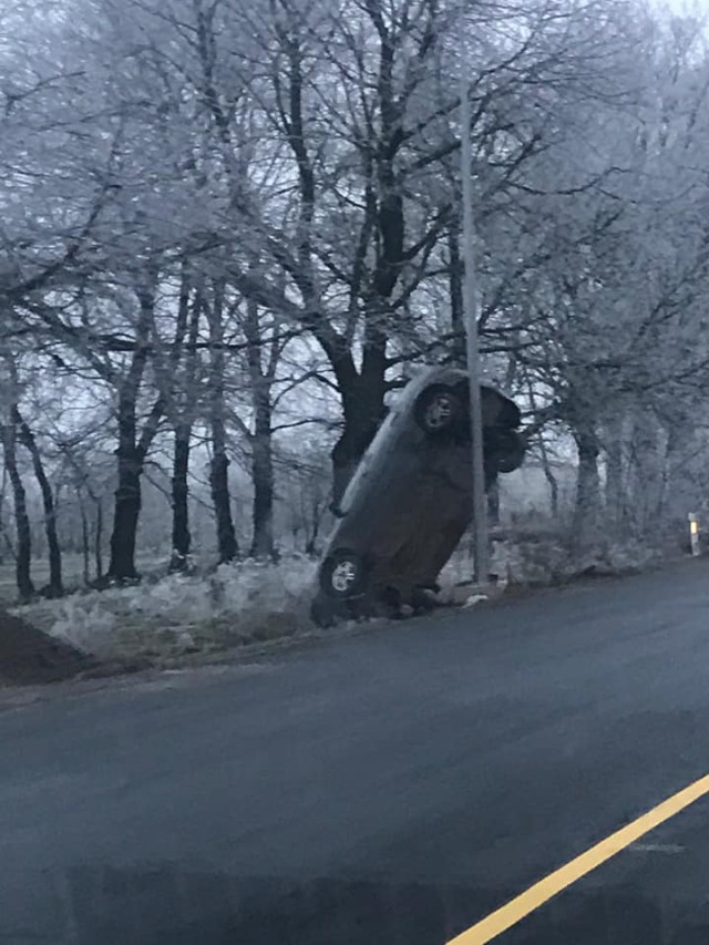 На Волині авто на передніх колесах залетіло у кювет. Фото