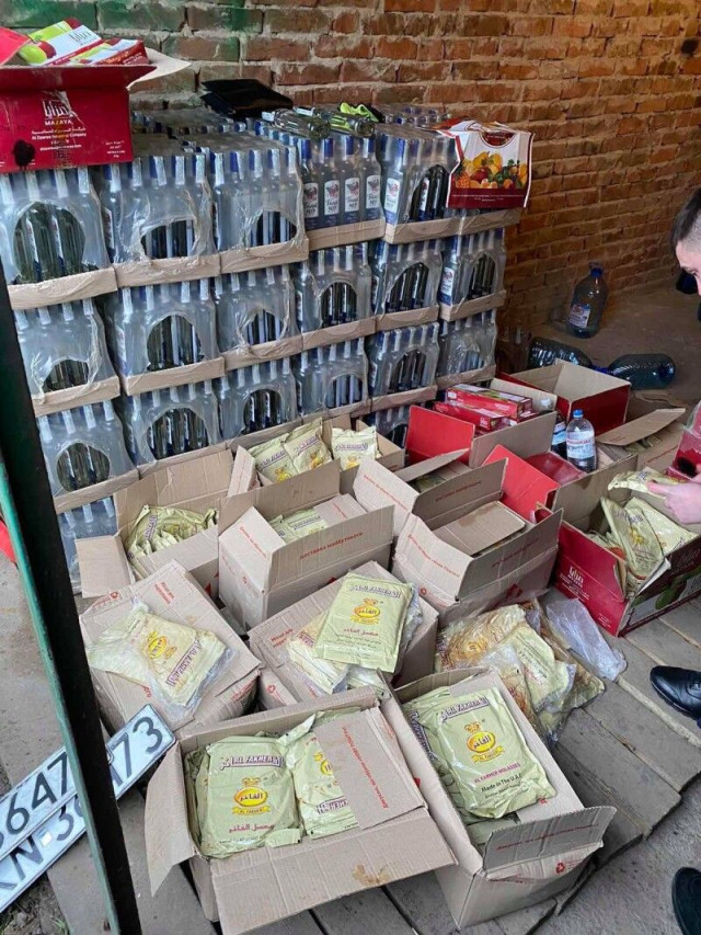 Під час огляду приміщення цеху в межах кримінального провадження, розпочатого за фактами незаконного виготовлення, зберігання, транспортування з метою збуту і збуту підакцизних товарів та незаконних дій з марками акцизного податку, загалом вилучено понад 600 літрів підготовлених до розливу спиртових сумішей, 52 ящики горілки різних найменувань з акцизними марками, які відрізняються від тих, що перебувають в законному обігу, обладнання для виготовлення і розливу алкоголю і 300 кілограмів контрафактного тютюну для куріння кальяну.