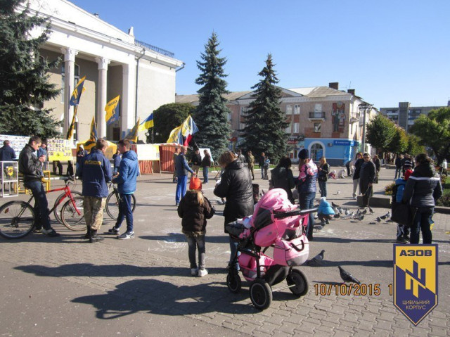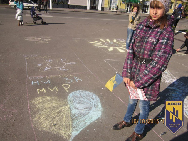 На акції була представлена фотовиставка полку «Азов», виставка дитячих малюнків та робіт художниці Юлії Ліховської.