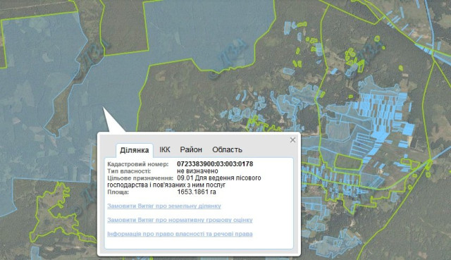 Йдеться про ділянки площею 12,0288, 322,5726, 50,6115, 43,7728 та 759,2247 гектара за межами населених пунктів Рівненської сільської ради та ділянку площею 1653,1861 гектара за межами населених пунктів Полапівської сільської ради.