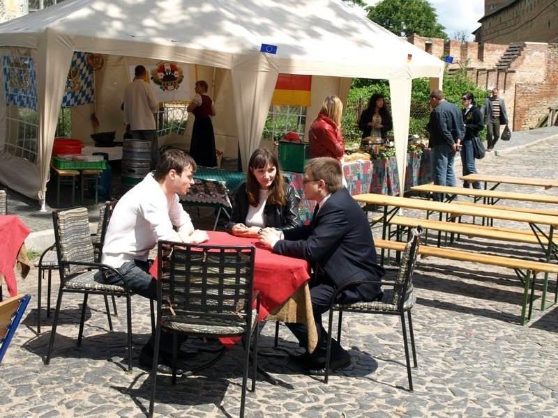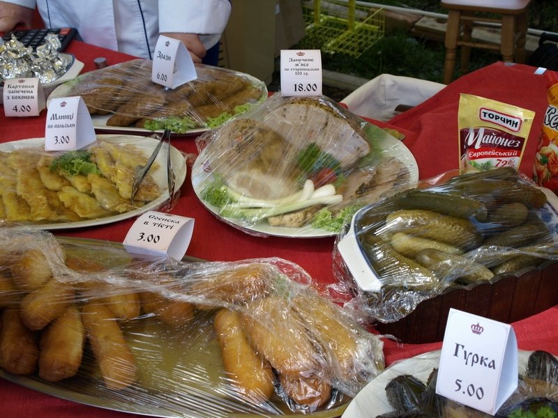 А усіх, хто зголоднів, на Замковій площі пригощали стравами різних європейських кухонь. На виставці-ярмарку традиційних страв народів Європи можна було перекусити чеськими грибами в пиві, французькою рибою з креветками, польськими фаршированими помідорами та іншою смакотою.