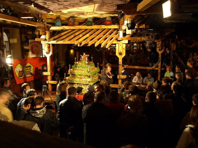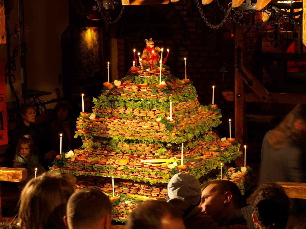 У Луцьку виклали найбільший у світі торт із бутербродів з салом. Цей «витвір мистецтва» сконструювали 19 жовтня у народному клубі «Майдан» у рамках ІІІ Чемпіонату любителів сала «З любов’ю до… САЛА», – повідомляє репортер «Волинських Новин».