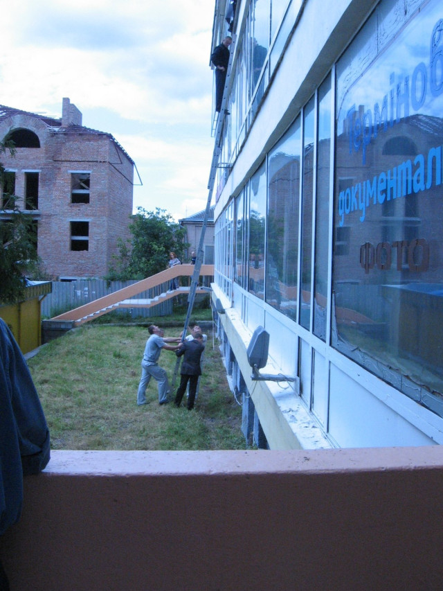 Сьогодні, 21 липня, приблизно о 12.00 працівники управління муніципальної поліції Луцької міськради спробували демонтувати «антимуніципалітетний» плакат, який із 11 липня висить на приміщення ДКП «Молодість». Щоправда, на заваді муніципалам стали об’єктивні перешкоди – драбина, якою користувалися для проведення демонтажу, виявилася закороткою, – повідомляє репортер «Волинських Новин».