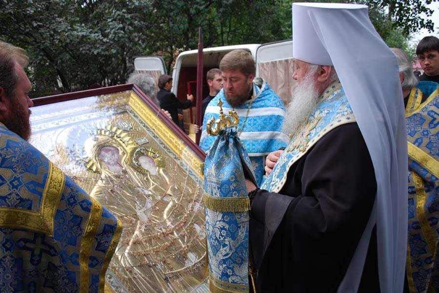 За інформацією прес-служби Волинської єпархії УПЦ, святиню поблизу Свято-Покровського кафедрального храму Луцька зустрічали віруючі люди із духовенством єпархії на чолі з керуючим Волинською єпархією митрополитом Луцьким і Волинським Ніфонтом.