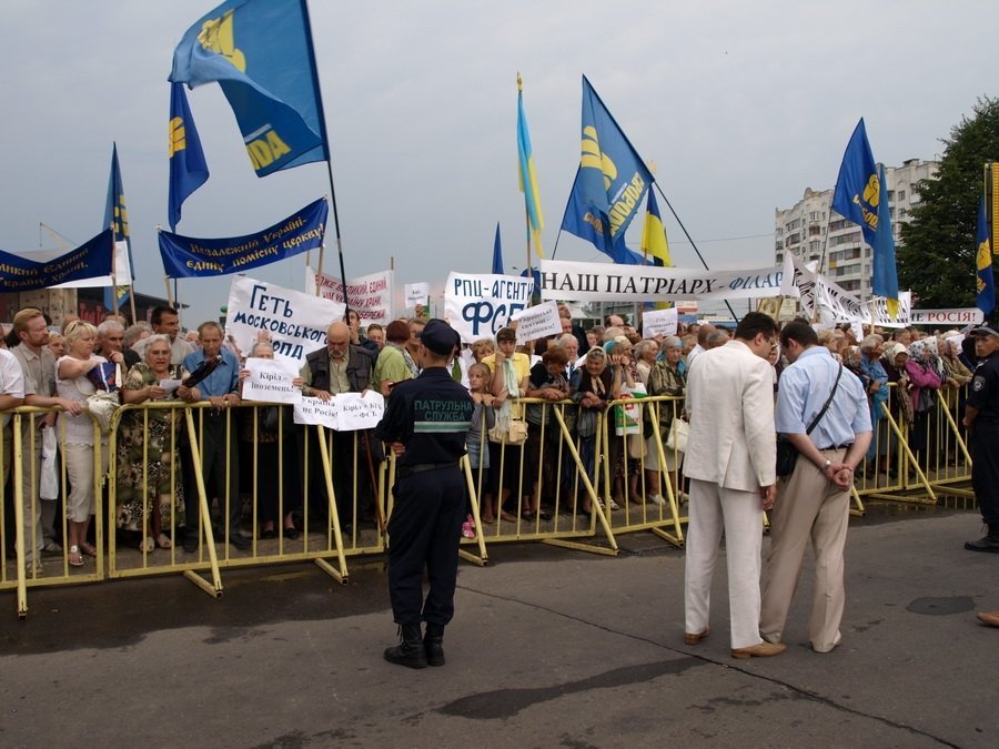 Натомість віряни УПЦ кричать «Наш Патріарх – Кирил!» і співають релігійних пісень.